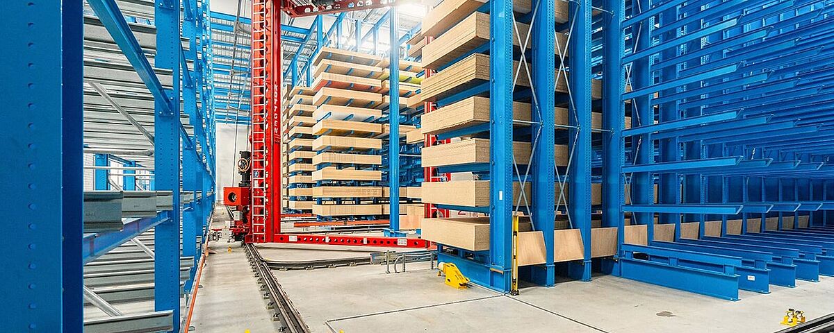In a fully automated order picking warehouse, all storage and retrieval, picking and provision of order-related packages is fully automated. This increases the efficiency of the entire storage and order picking process, and uses available space while reducing goods damage. If a shipping order requires the picking of different individual sheets, a vacuum manipulator has the corresponding articles ready for shipping, ensuring several orders can be processed at the same time. As a result, two separate systems can put orders together very efficiently in the smallest space.