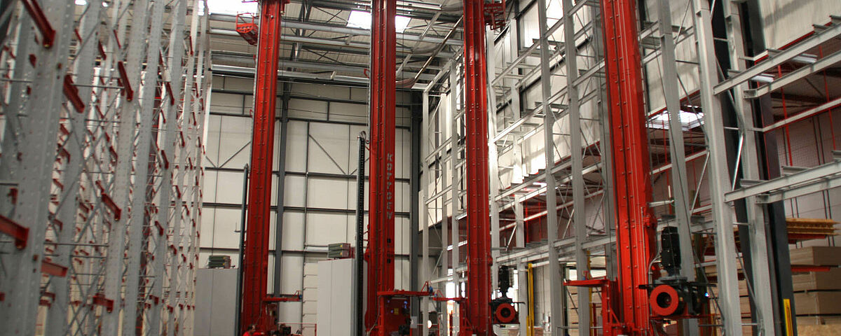 Stacker cranes are rail-guided vehicles for handling goods in an automated racking system. The maximum height of a stacker crane is 46m. Depending on the stored goods, weight and dimensions, a distinction is made between different types of stacker cranes, with three options described below: