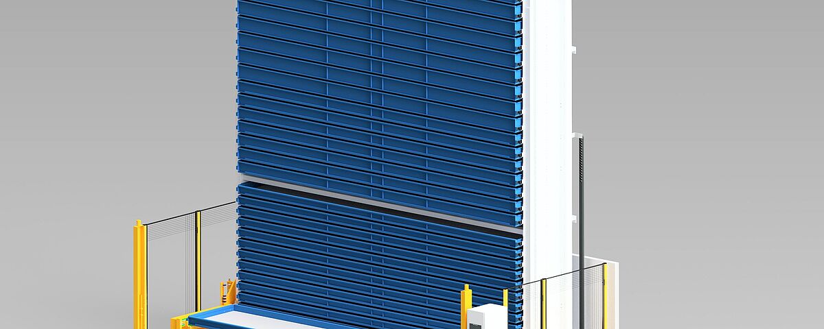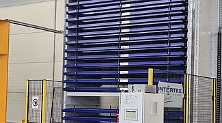 The InterMat system is an automated carousel storage system operating on the paternoster principle. Stored goods are delivered to the operator at the push of a button—quickly, reliably, and without manual searching. Typical applications include storage of long goods, cable drums, cylinders, or rolled materials.