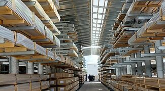 ALBIXON, one of the leading manufacturers of swimming pools and pool enclosures in Europe, has expanded its storage capacities with a covered cantilever racking system from OHRA. Palletised aluminium profiles are stored here; the length of the pallets is 5 to 12 metres, the weight ranges from 500 to 1,200 kilograms. Not only can the material requirements of the expanded production be met with the new racking system, the overall efficiency in warehousing has also been increased.