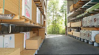 Before the reorganisation of the storage area, the timber products in Lorup were stored in different areas of the site, some in the main building and some outside, unprotected from the weather. The length of the stored beams and battens was limited due to the storage space situation, and the storage capacities were almost exhausted.