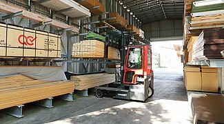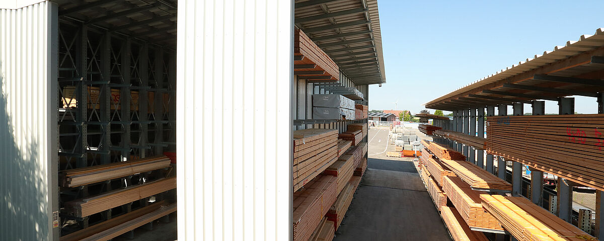 The new racking hall for timber goods enables significantly more efficient logistics processes at the BAUKING site in Lorup. Customers can access a wider range of products; for example, items up to 13 metres long can now be stored without any problems. Due to the central storage of all timber goods in a cantilever racking system, customers receive the desired goods in a shorter time.