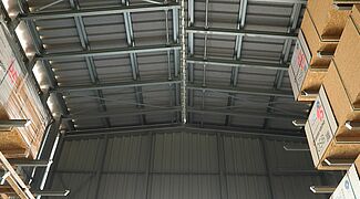 The runs of racking are aligned along a gradient direction. Since the cantilever arms of the OHRA racks are clipped in and OHRA uses a small arm pitch, the arms were able to easily compensate for the height difference of about 14 centimetres along the racking length. To compensate for the second slope in the transverse direction to the rows of racking in the roof construction, OHRA utilised a variably designed roof ridge. Here, the roof arms of the racks are not connected to each other, but there is a gap of about 10 centimetres between them. It is covered by a flexible ridge cap so that the inside of the unit remains dry. This ridge solution not only compensates for the difference in height between the rows of racking, but also guarantees that vibrations and stresses that arise, for example, during storage, are not transferred from one row of racking to the other. This protects the roof structure from damage.