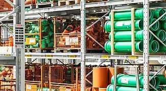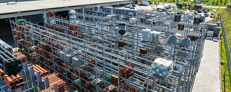 When equipping the new site in Neumünster, building materials retailer Henri Benthack deliberately opted for cantilever and pallet racking made from hot-rolled steel profiles. Compared to shelving made from cold-rolled sheet metal profiles, they offer significantly higher load-bearing capacities and allow larger spans. They are also more robust in operation and retain their static capabilities even in the event of "bumps". OHRA supplied all the shelving required for the new location, from cantilever and pallet racking for indoor and outdoor installation to special long-span racking and vertical racking for the storage and presentation of mouldings.