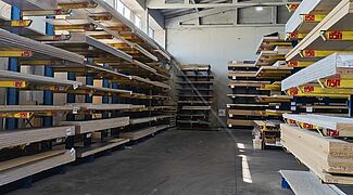 The frames and the supports of the robust racks are made of solid hot-rolled steel profiles. The hot-rolled steel of the heavy-duty racks yields elastically while still retaining its advantages in terms of high vertical load-bearing capacity – for example, the profiles do not buckle when struck by forklift tines. The design also allows for particularly high bay and individual beam loads.
