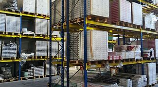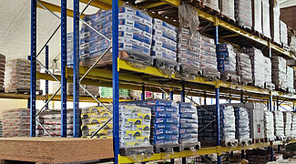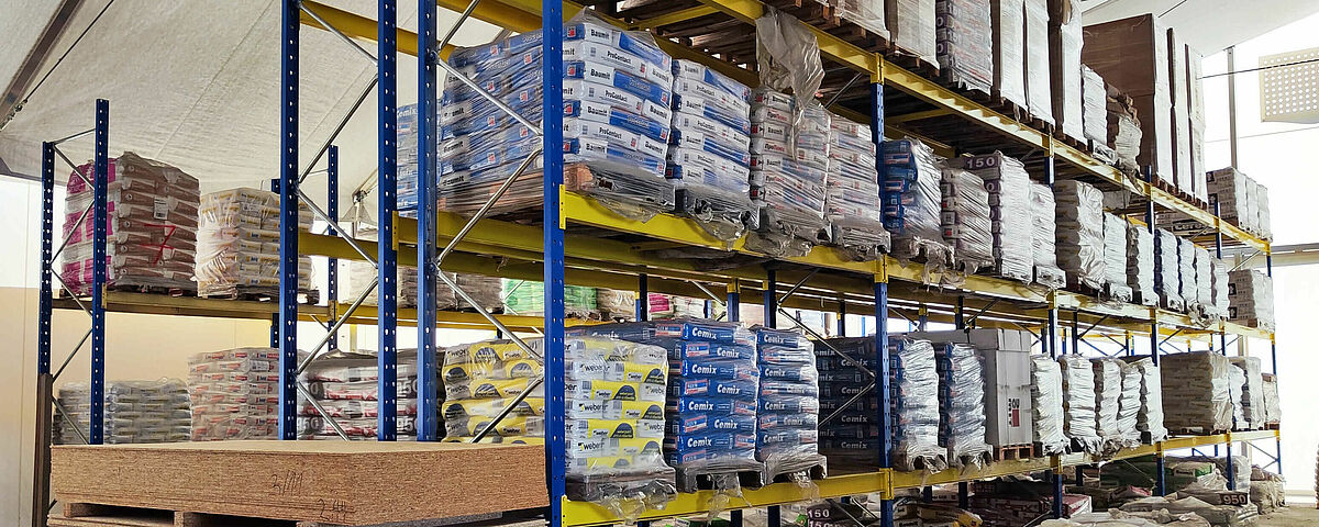 New heavy-duty racks from OHRA allow Budmax, one of the largest distributors of building materials and finishing products in Bulgaria, to store bagged goods efficiently. Until now, they stood on pallets on the floor. With a beam load of 5,000 kilograms and a frame height of 4,580 millimetres, Budmax can now store the pallets weighing up to 1,200 kilograms on four levels; this enables significantly better use of space as well as much easier and faster access to the items.