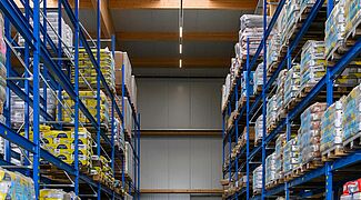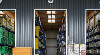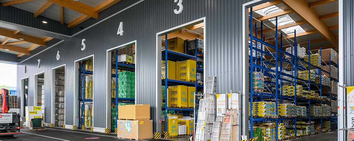The aim of the renovation and new building of the Radolfzell branch was to create more space for a greater number of items, as well as to improve the quality and speed of throughput times. Previously, the inefficient use of storage capacity at the 6,000 square metre site had led to delays in storage and retrieval, and therefore in customer collection. In addition to a large outdoor storage area and a 1,500 square metre warehouse, the new 1,000 square metre drive-in area is the central hub of the modernised branch.