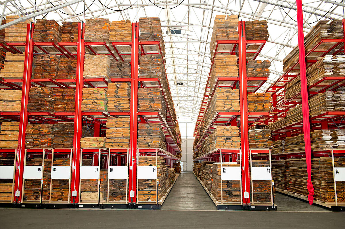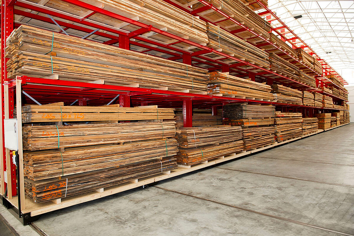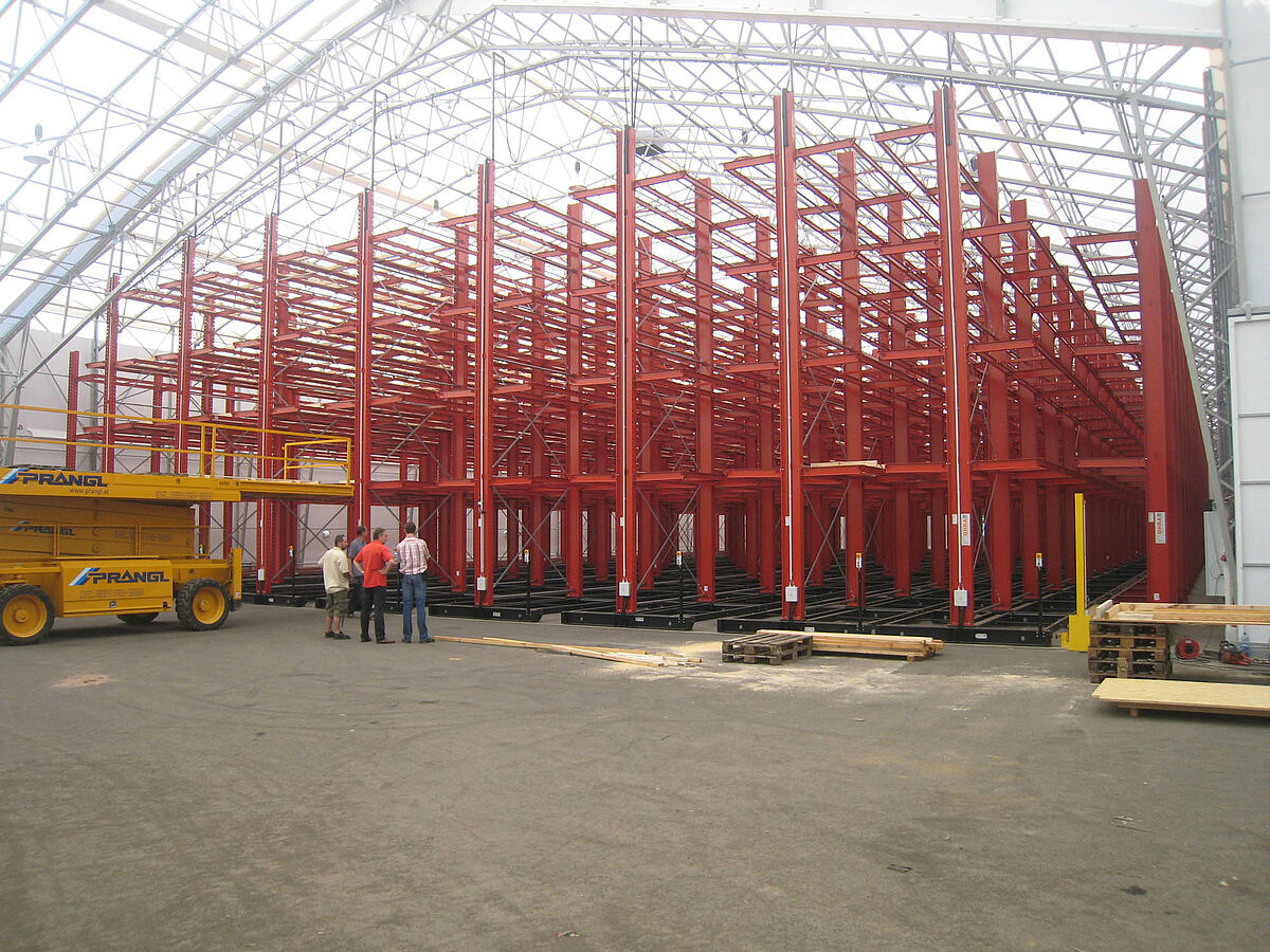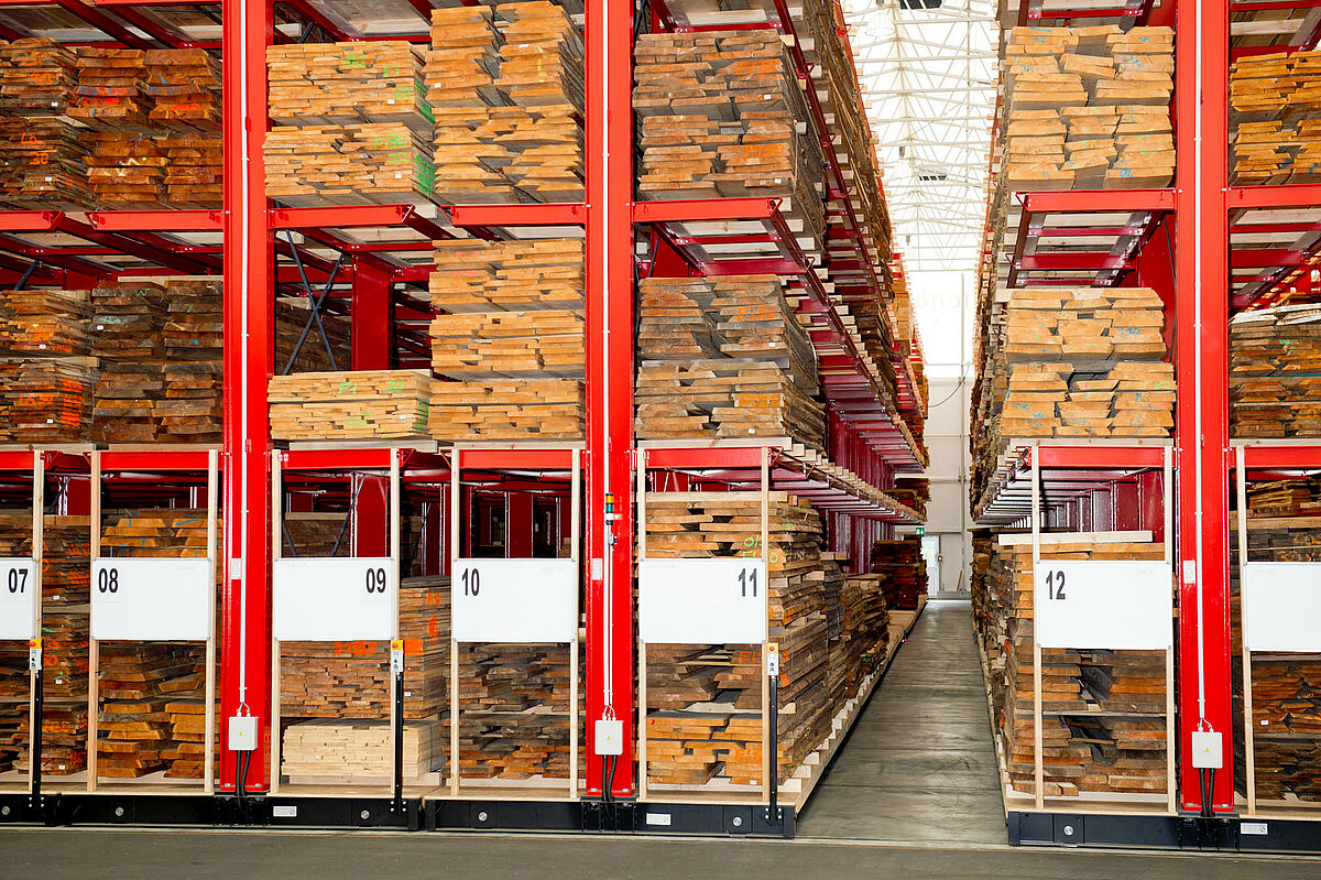 At its central warehouse in Graz – the Wood Megastore – Hechenblaikner offers sawn timber, veneer, solid wood boards and semi-finished products for the construction of windows and doors across a floor space of 20,000 square meters. Until now the goods have been stored on the floor in piles. With the increasing number of stored articles this required ever more frequent laborious manipulations. With packets up to 6 meters long, over 1 meter wide and 3,000 kilos in weight this was extremely time consuming, furthermore the frequent handling often resulted in damage to the stored wood products.