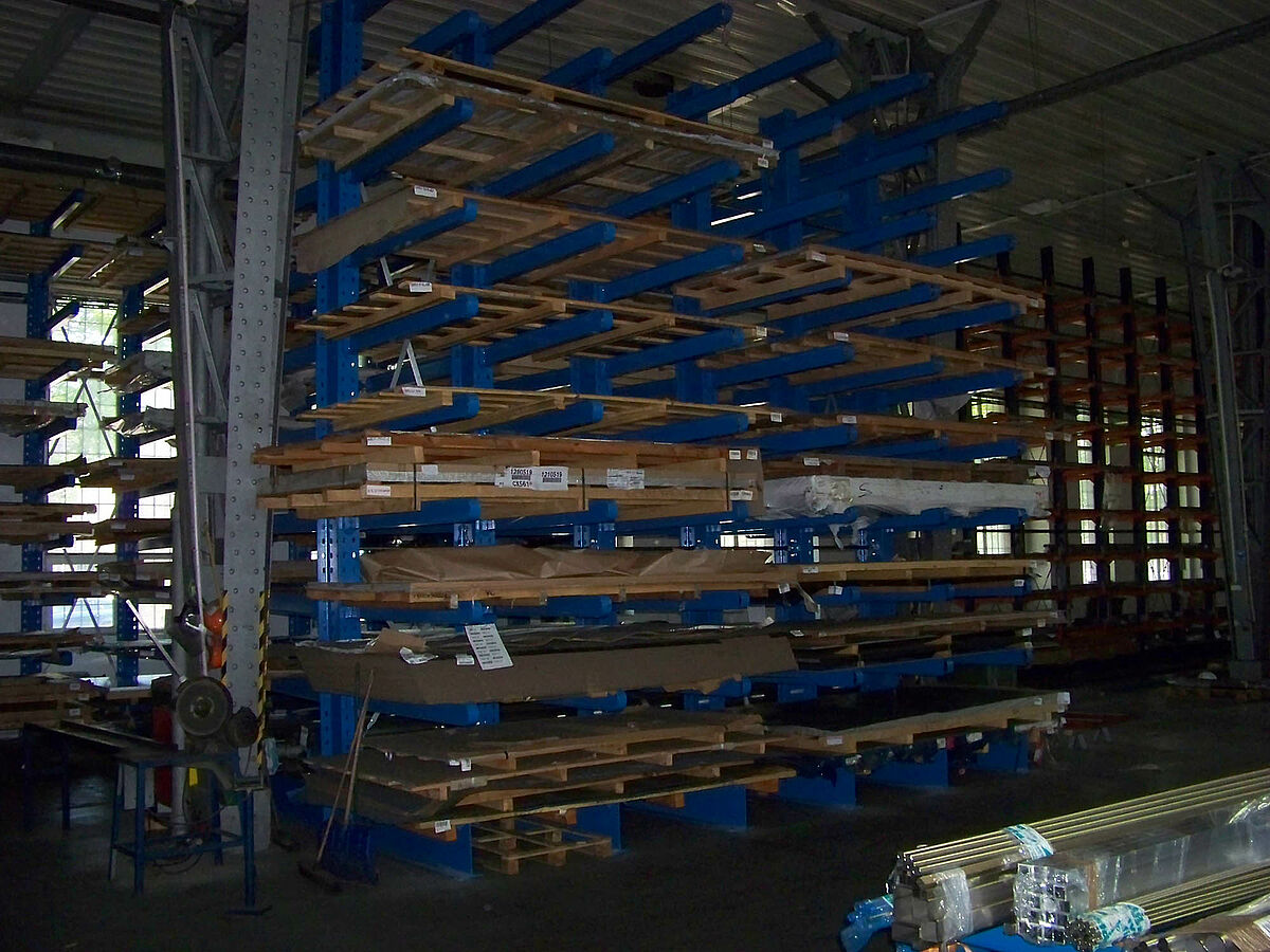 In order to be ever closer to its customers Investa continues to expand its network of branches in Poland. For the storage of its sheet metal with dimensions of up to 3,000 mm long and 1,500 mm wide, as well as profiles and tubing with lengths of up to 6,000 mm, Investa employs cantilever and pallet racks from OHRA. A characteristic feature of the OHRA cantilever racks are the clipped arms in the uprights. They remain flexible and mobile even under high loads and deflect in the event of impact, e.g. with a fork lift truck. Thus, the column and goods remain undamaged. OHRA exclusively employs high quality hot-rolled steel for its rack systems, which yields elastically in the event of impacts, while still retaining its high vertical load capacity. The cantilever columns have a 10mm pitch as standard so can be adjusted to warehouse conditions - no tools are needed for adjusting the cantilever arms.