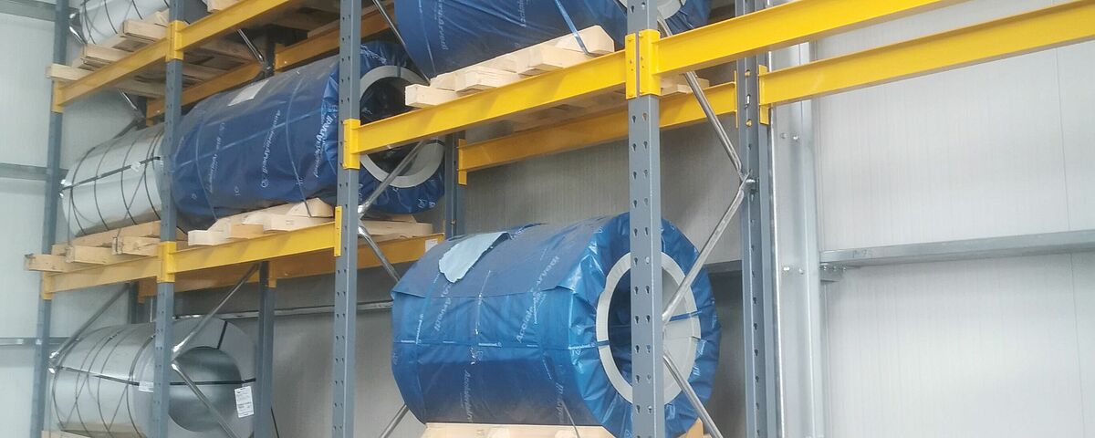 Coils made from a wide variety of (non-ferrous) metal sheets are the starting material from which Invesztál produces a wide variety of shapes and types of roofing and gutter systems. Until now, the company stored them on the floor or in a pallet rack that was not ideal for coil storage. The new, customised heavy-duty pallet racking from OHRA has enabled the company to reduce damage to the coils and make efficient use of space in a new warehouse.