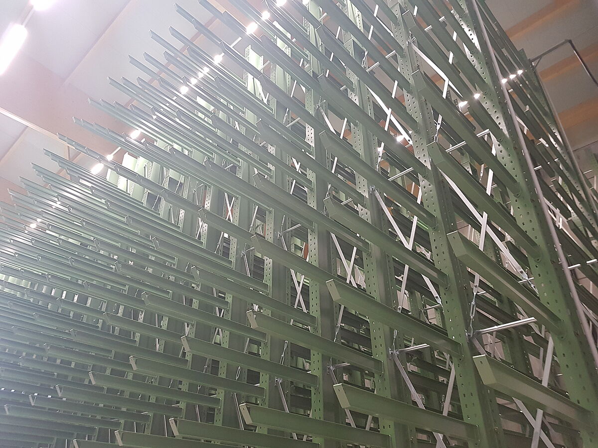 OHRA equipped the storage with four cantilever shelvings assembled on mobile wagons; and at the front face of the storage, each one single-sided cantilever shelving is additionally installed – forming, so to say, a frame for the mobile racking system. Each of the mobile racks is 34 metres long and close to 11 metres high. To reach the required load capacities, each of the 35 shelving stands is built from 450 IPE profiles – the strongest profiles in the OHRA range: They enable a load capacity of 19.2 tonnes on 13 storage levels. In total, every mobile shelving row thus provides a storage capacity of 750 tonnes – at an empty weight of 720 tonnes for the total racking system. With the new racking system, Karl Pichler customers can now access a wider range of products at shorter waiting periods – on the same floor area of the previous storage.