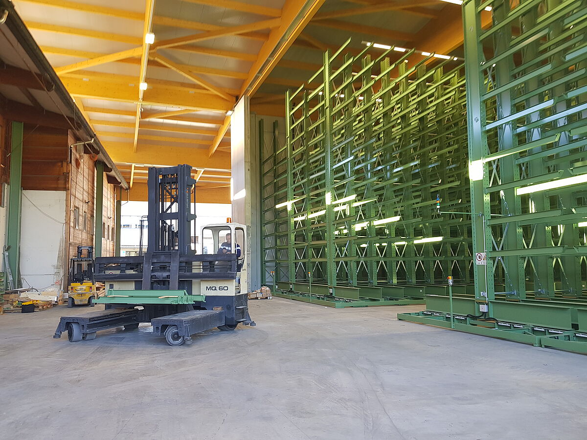 Karl Pichler serve the markets of South Tyrol, Trentino, and North Tyrol via four locations. Their product range comprises wood and wooden materials as much as wooden floors, terraces, and facade solutions. Hitherto, the goods were stored in fixed racks. But these did not provide sufficient space for the growing range of products. Furthermore, the inventory of the individual items was to be increased to ensure better availability of the goods.