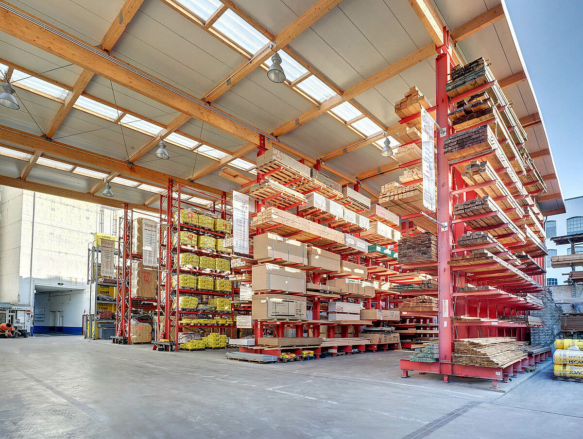 Depending on the assortment different specialized version were planned and executed for the pallet racks. The cantilever with different arm lengths can also be used for varying product sizes.