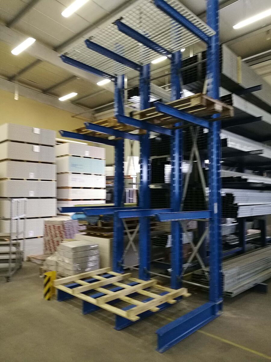 For space-saving storage of the long goods—for example drywall profiles—Lambda has also installed various galvanised external cantilever racks from OHRA. The upright height of 4,240 or 4,840 millimetres also offers a good utilisation of the available floor space.