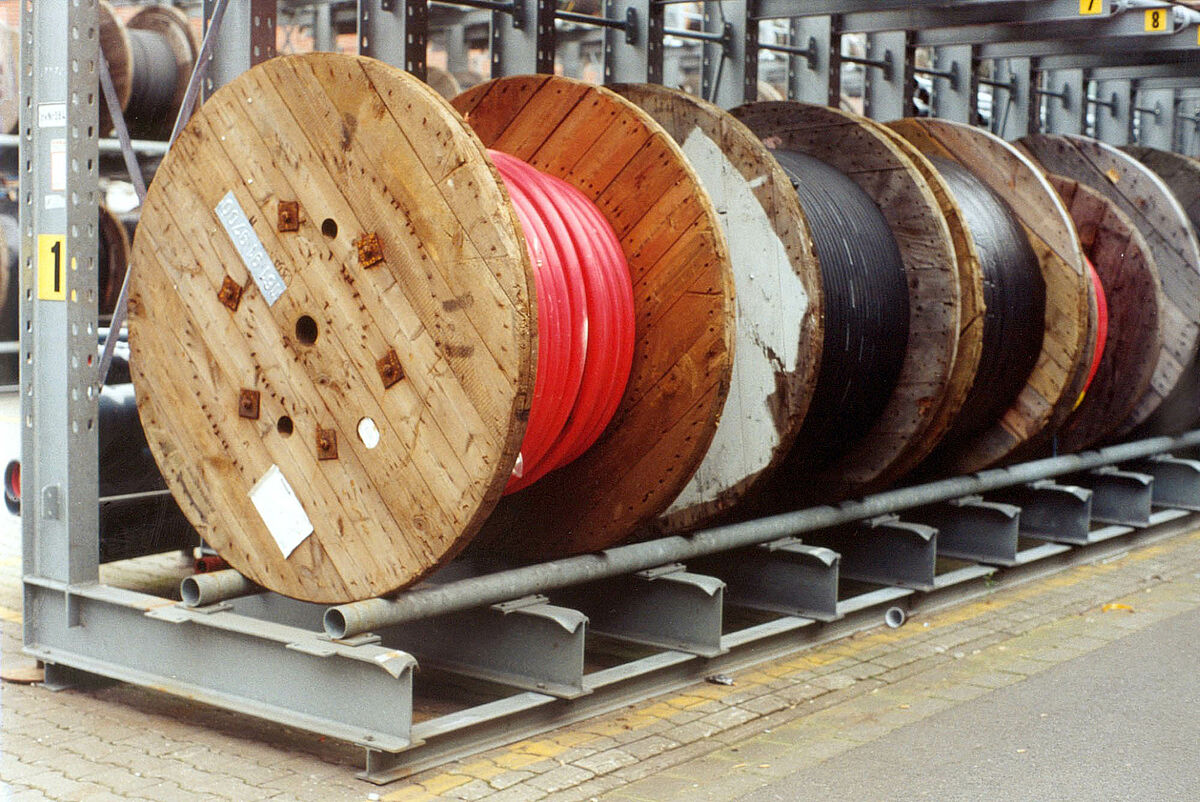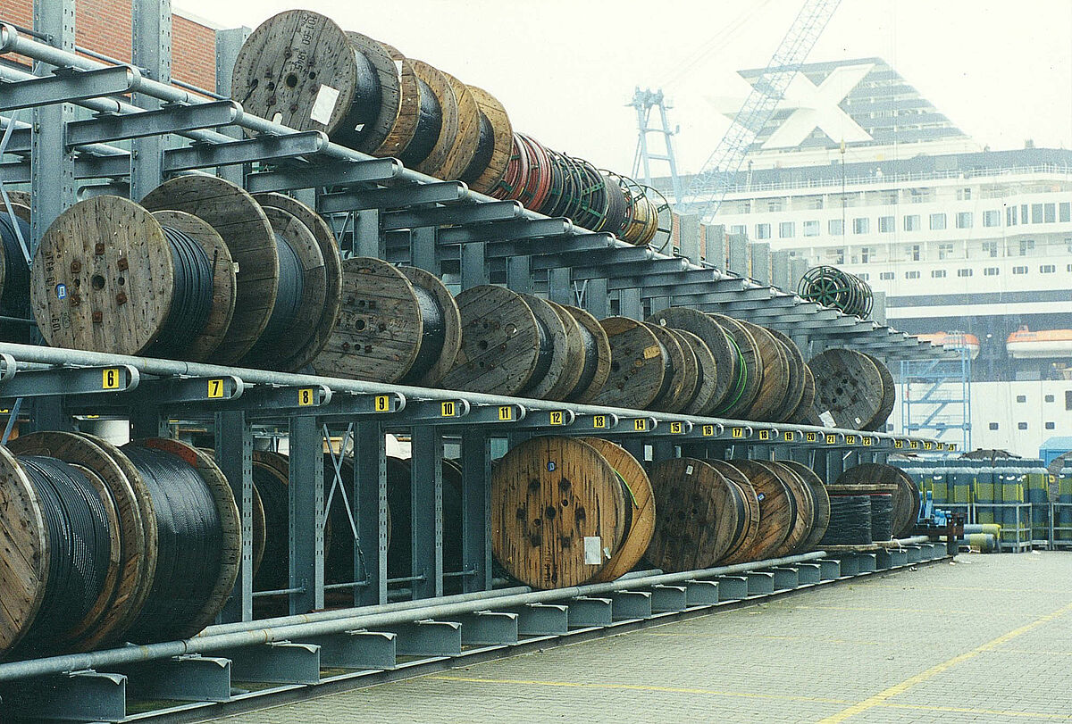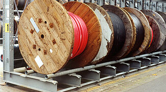 Heavy cable drums with different sizes and weights are stored without any loss of space in solid OHRA cantilever racks. The height of the rack is 4,500 mm with a usable depth of 1,400 mm and 1,200 mm, dependent on the diameter of the drums.