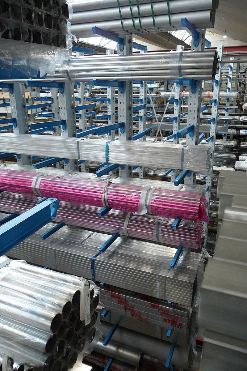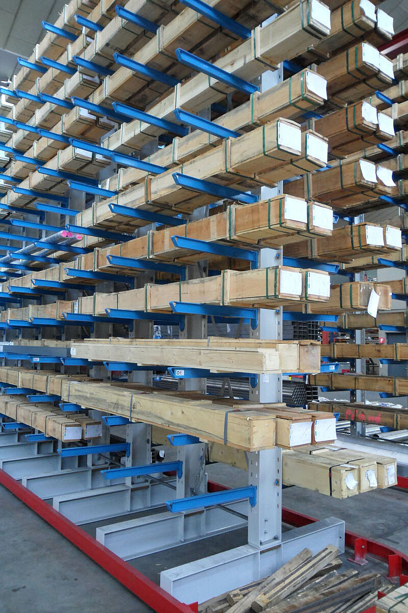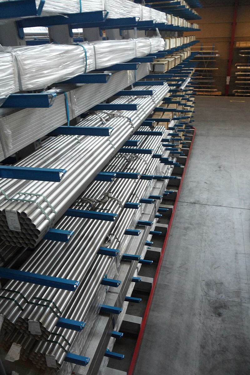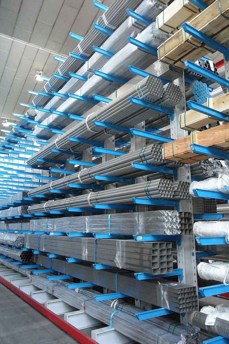 Within the space of 9 days OHRA installed an appropriate three-aisle cantilever rack warehouse. The construction was carried out in quick succession: Following the completion of one aisle it was immediately filled with goods while the next row of racks was being assembled. This required a strict project plan so as not to disturb the operating procedure.
