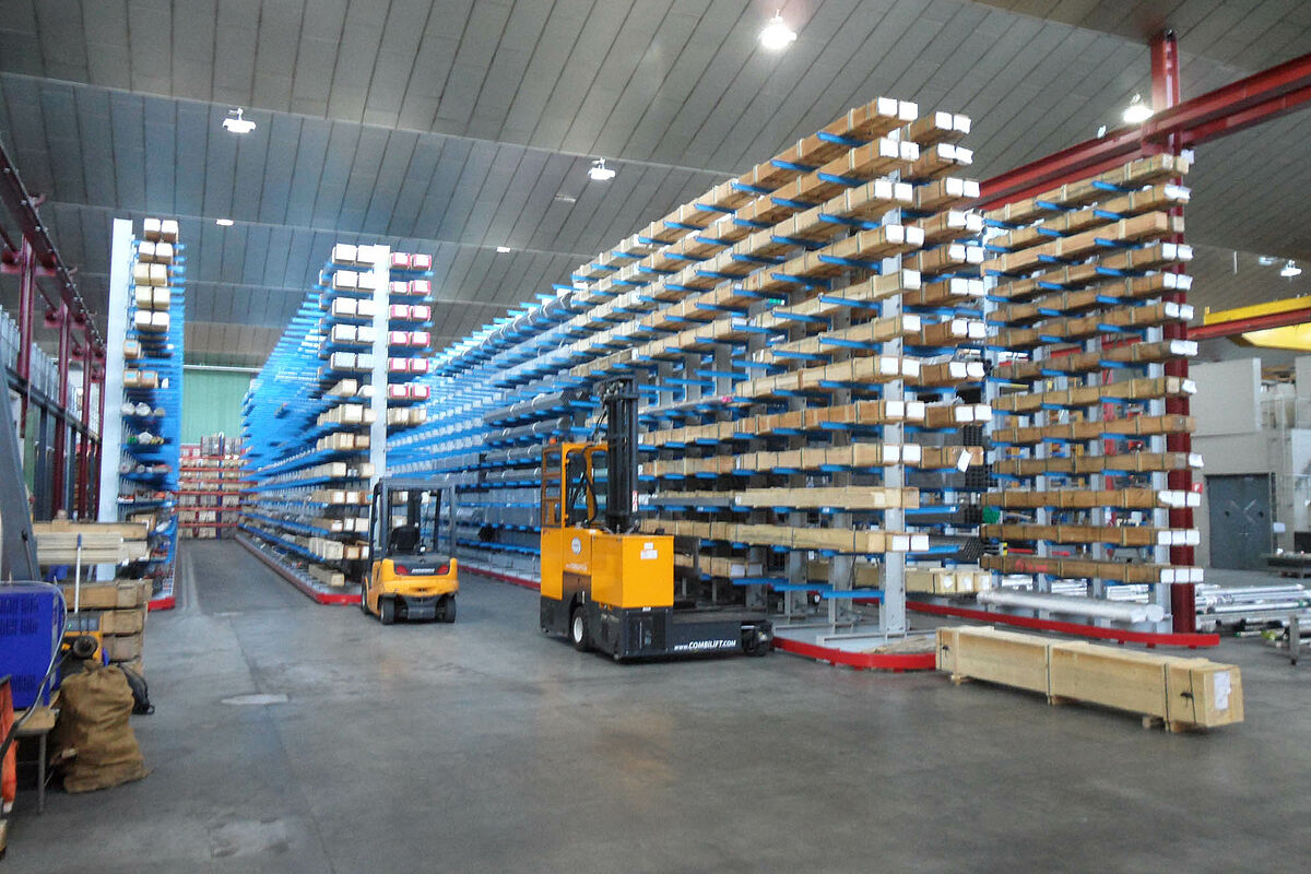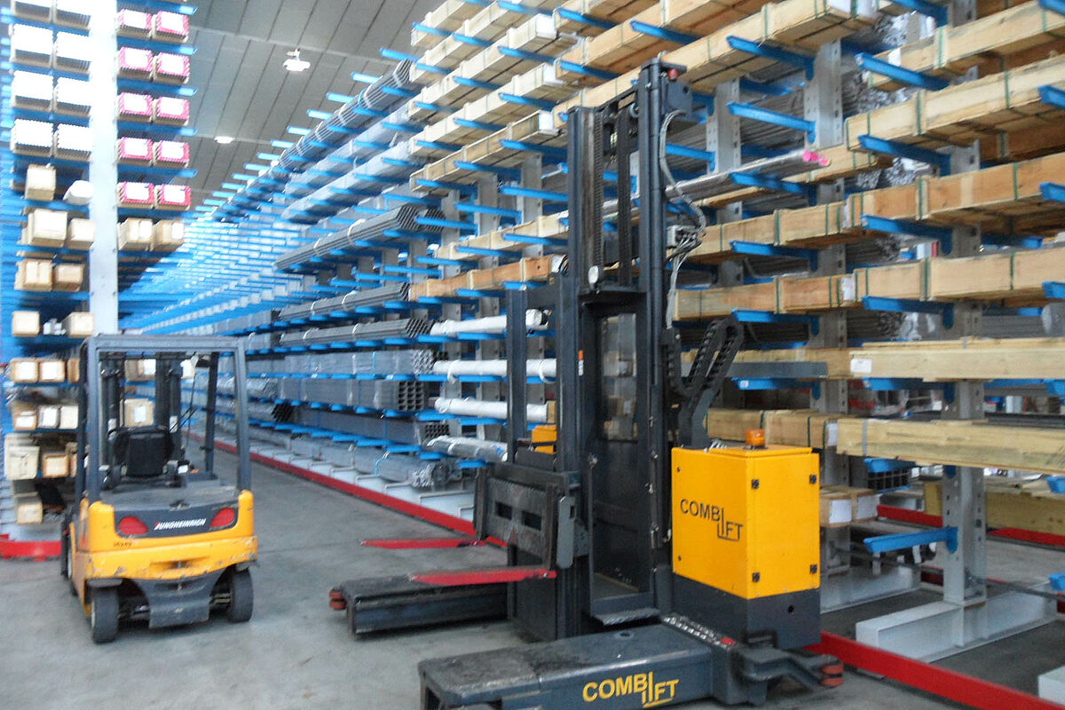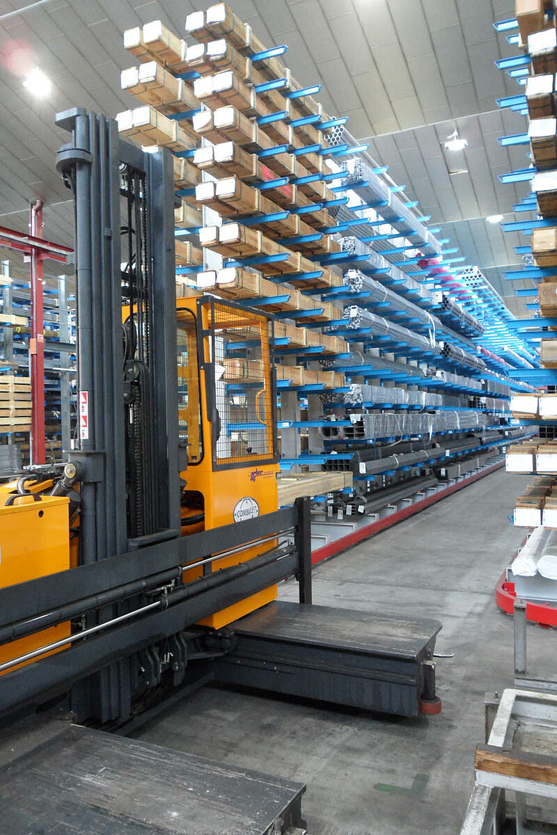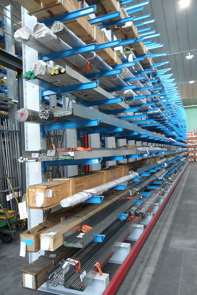 Within the space of 9 days OHRA installed an appropriate three-aisle cantilever rack warehouse. The construction was carried out in quick succession: Following the completion of one aisle it was immediately filled with goods while the next row of racks was being assembled. This required a strict project plan so as not to disturb the operating procedure.