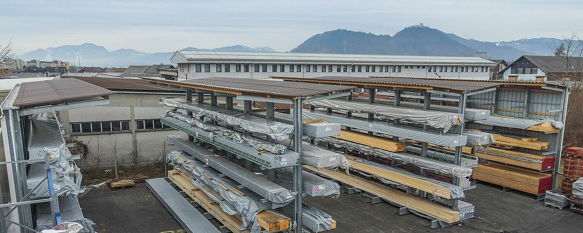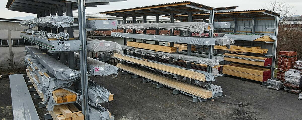 With a high stock of articles, Obenauf ensures fast delivery, even in small quantities, directly to its customers' warehouses. To continue to guarantee this high delivery capacity, the company built the new warehouse at the Kranj site. It supplies roofers, carpenters, and manufacturers of prefabricated houses with building materials and semi-finished parts. During the planning phase, the focus was on additional storage possibilities for up to 13-metre-long construction timber, as roofers and carpenters increasingly demand these items from Obenauf. Until then, the company stored these timbers as well as 6-metre-long sandwich panels for roof insulation on the floor in block storage. This made it difficult to access the individual articles and repeatedly caused damage during handling. In addition, the goods were previously unprotected from the weather in the outdoor area.