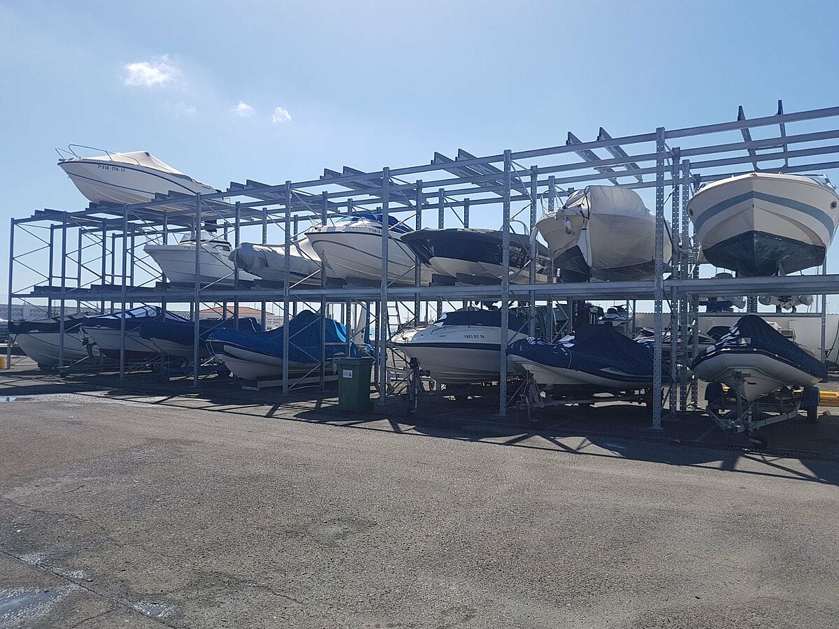 This includes the possibility to “store” one’s boat safely and dry if one can not use it for a longer period of time. For this reason, at the beginning of 2018, Marina Seca installed an OHRA racking system: More than 80 boats up to 7 metres in length and 3 tons in weight can be accommodated on the facility. In contrast to boats that stay in the water all year round, the owners save themselves complex conservation and antifouling measures by storing them in a dry place.