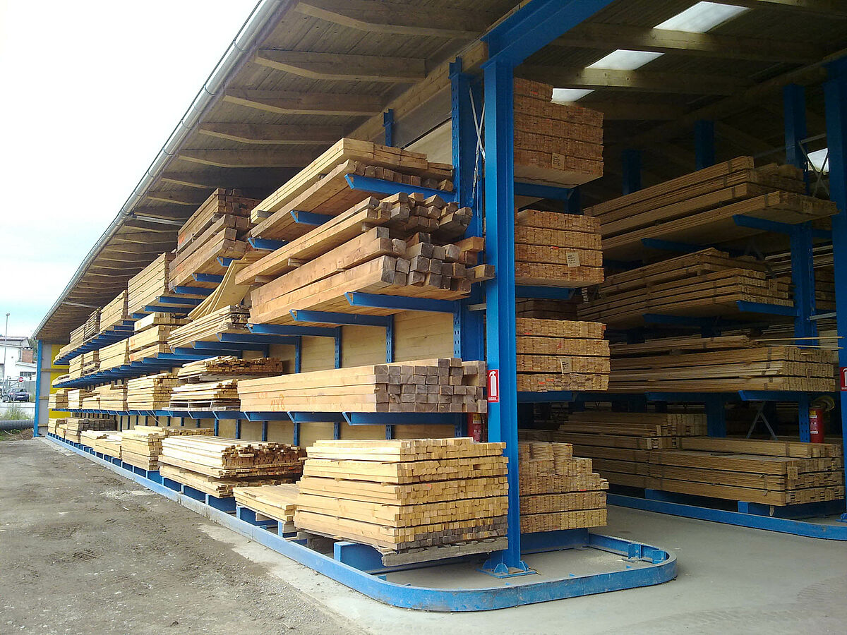 At the Slovenian company ŠVELC d.o.o., one of the largest sawmills in the region, cantilever racks from OHRA provide 50 percent more storage capacity in the wood warehouse. The three-aisle warehouse with a height of 5.7 meters is serviced by narrow-aisle forklift trucks enabling the stored material to be accessed quickly and safely.