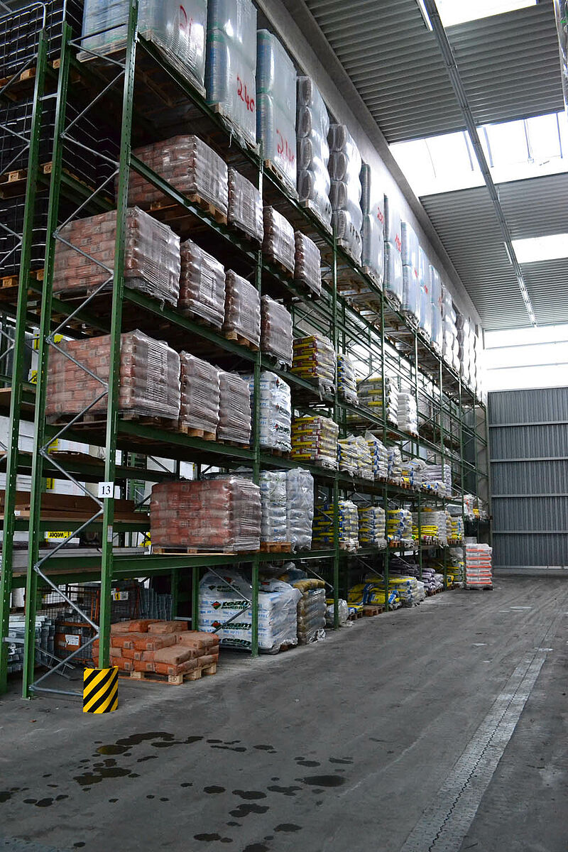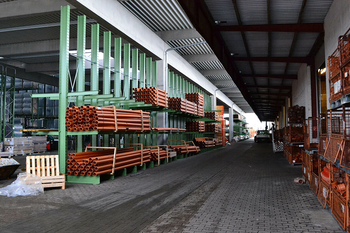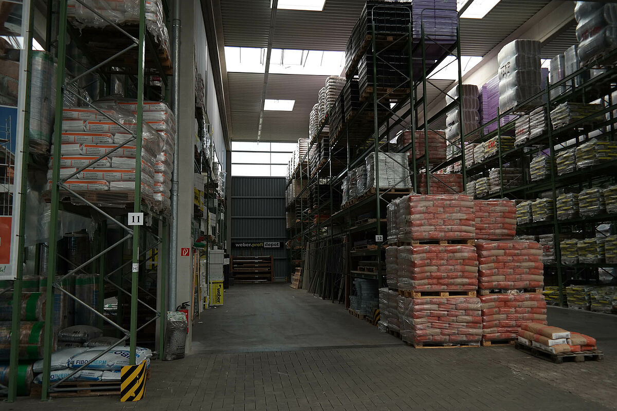 It is for this reason that team baucenter decided to improve the quality of storage with a new warehouse. It offers more room for a wide variety of goods and enables the entire product range to be brought together – the basis for short order picking paths. Above all, the new warehouse enables more goods to be stored under cover and the loading and unloading of the HGV is now carried out protected from the elements.