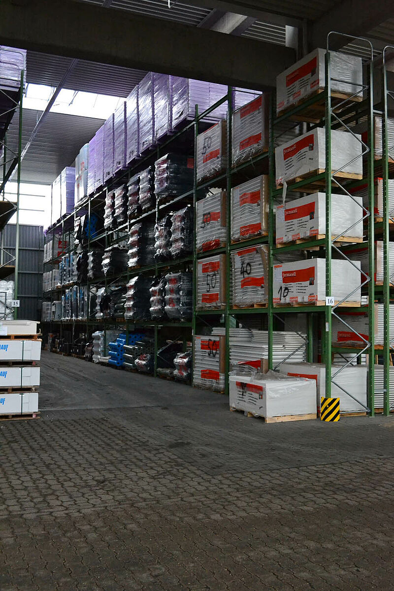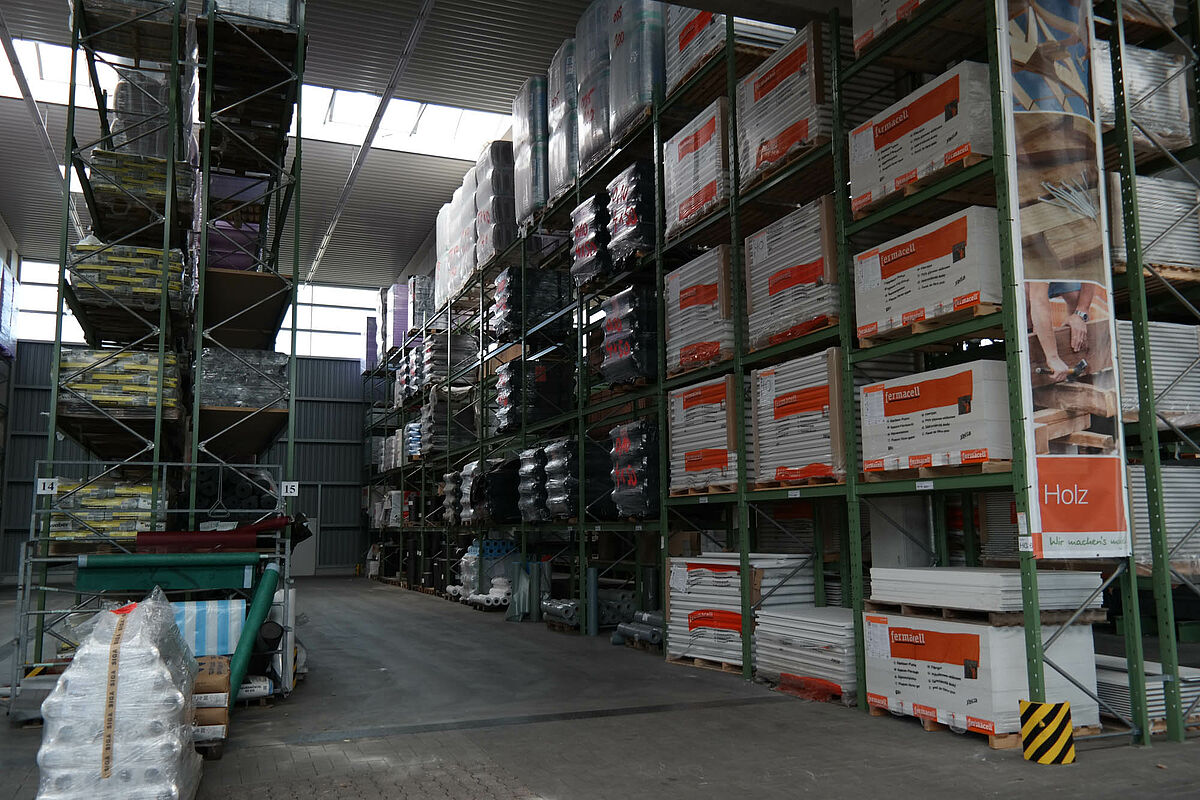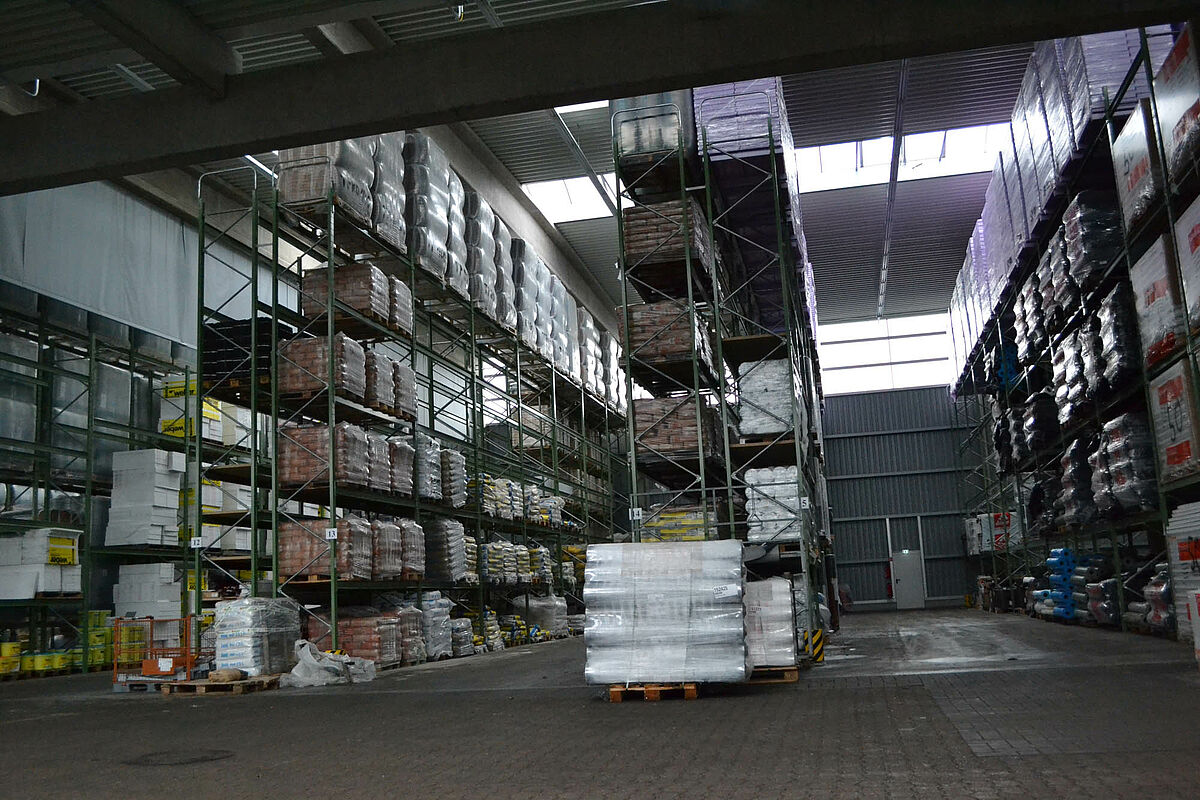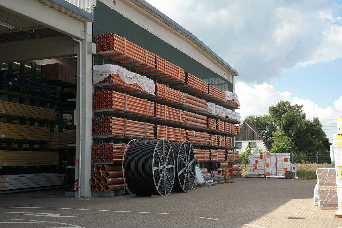 It is for this reason that team baucenter decided to improve the quality of storage with a new warehouse. It offers more room for a wide variety of goods and enables the entire product range to be brought together – the basis for short order picking paths. Above all, the new warehouse enables more goods to be stored under cover and the loading and unloading of the HGV is now carried out protected from the elements.