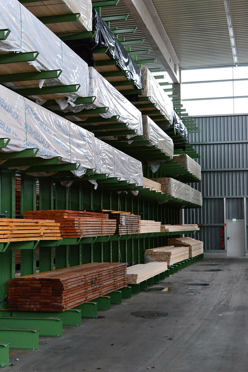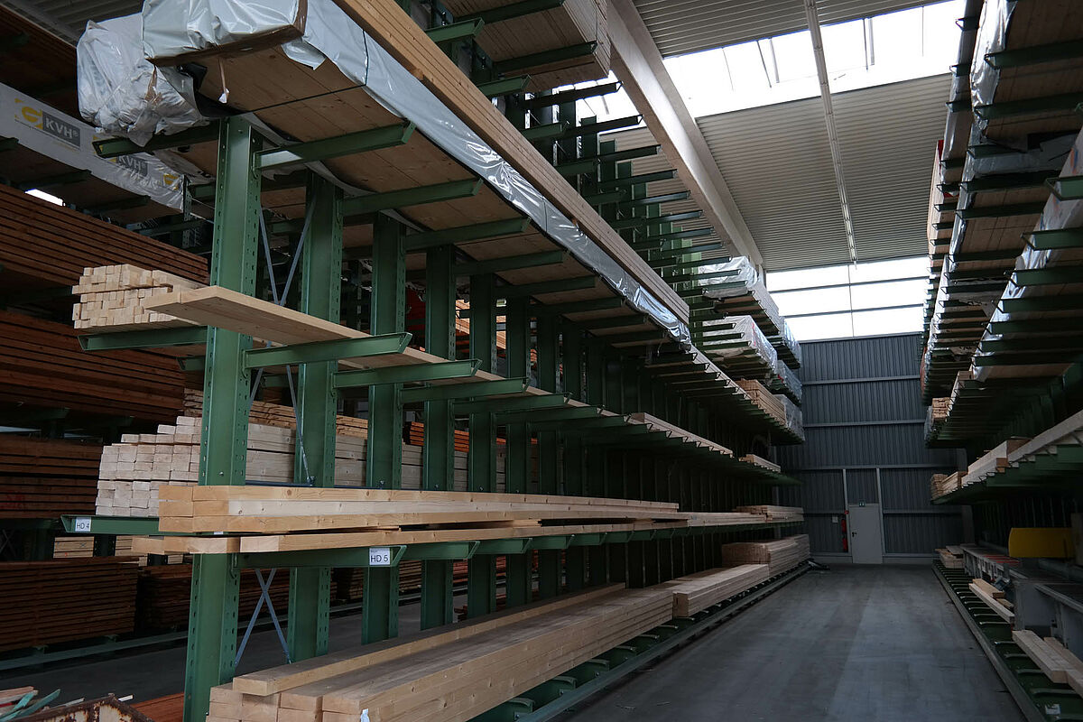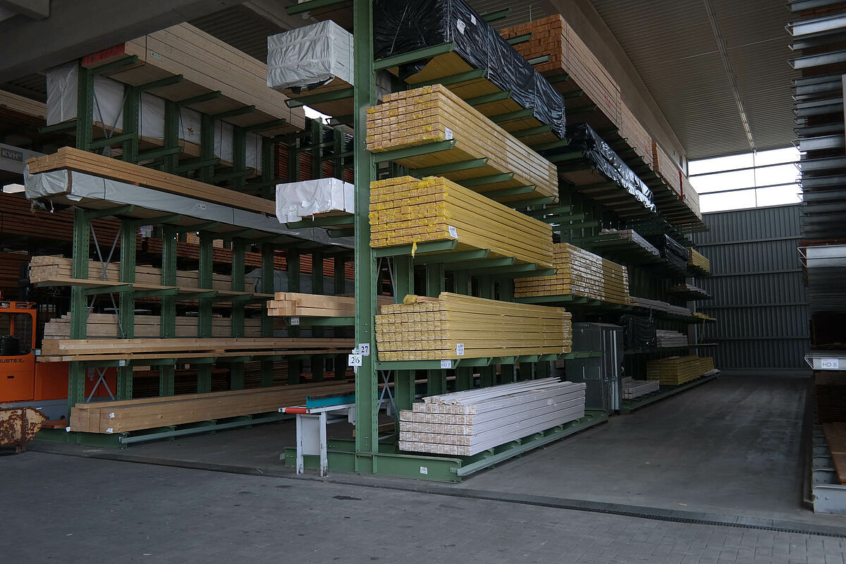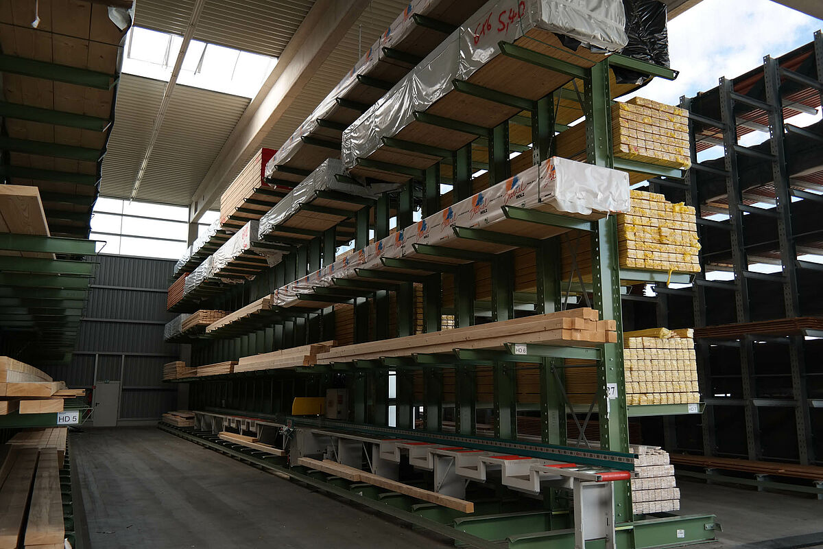 Up to now, team baucenter stored building materials in a partially covered block storage facility. In addition, timber with lengths of up to 13 m was stored in an outside rack. However, the roofed storage capacity was low and the wood was partially exposed to the elements. Handling goods in the block storage facility repeatedly resulted in damage to the products.