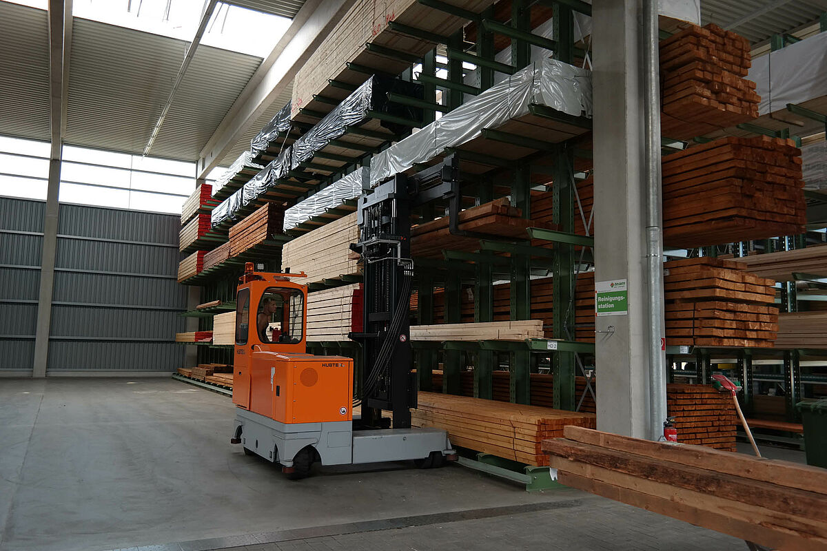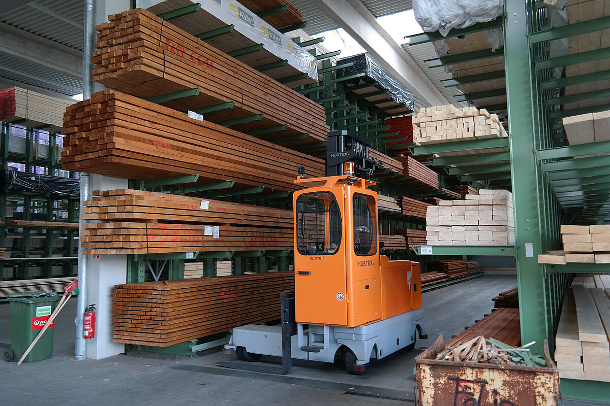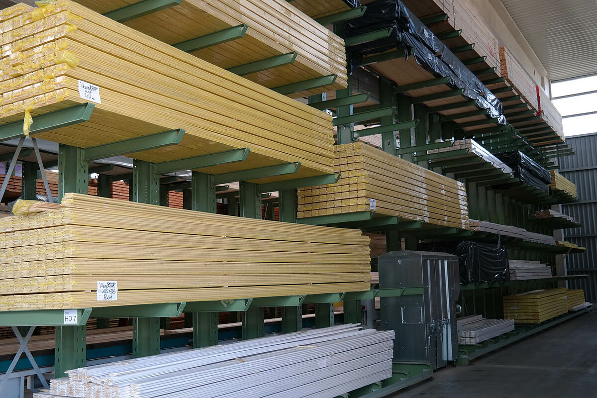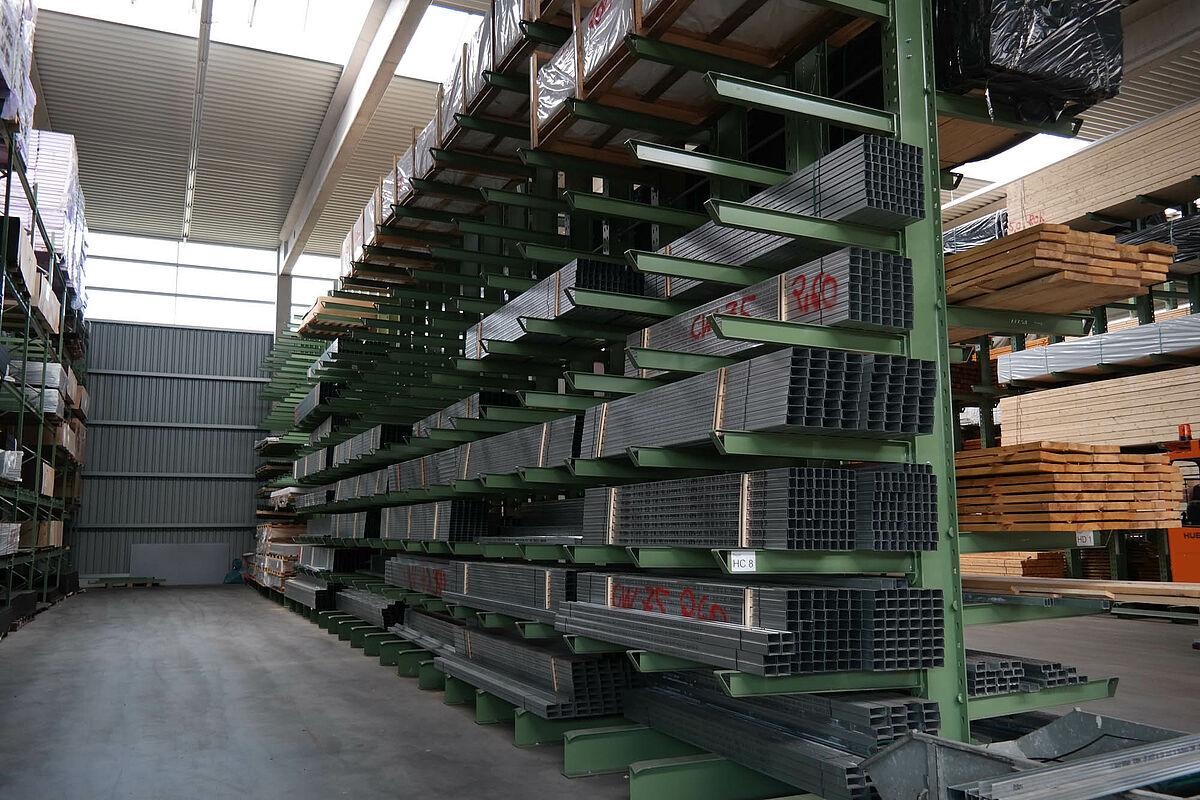 Up to now, team baucenter stored building materials in a partially covered block storage facility. In addition, timber with lengths of up to 13 m was stored in an outside rack. However, the roofed storage capacity was low and the wood was partially exposed to the elements. Handling goods in the block storage facility repeatedly resulted in damage to the products.
