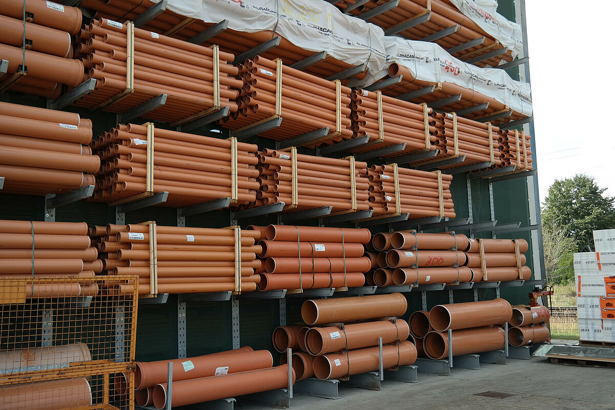 The team baucenter in Eggebek, market leader in the fields of building materials supply and DIY stores in north Germany, has succeeded in significantly improving the quality of its goods storage with a new warehouse. The products are now protected from the elements. Cantilever and pallet racks from the Kerpen based warehousing specialists OHRA, individually tailored to the different articles, reduce damage to the stored goods.