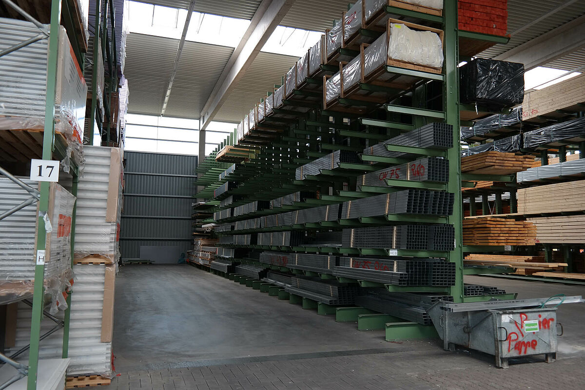 The experts from OHRA assembled 17 rows of pallet racks (each with ca. 130 pallet places) and ten rows of cantilever racks. The racks are 7.5 meters high and have a length of between 27 and 31 meters. Depending on the product, the goods are stored over four to five levels. Handling is carried out using electric and multiway forklifts.