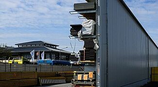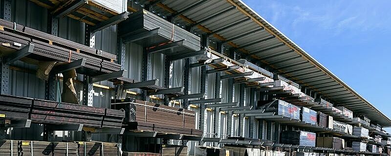 ULMA Construction, one of the leading suppliers of formwork and scaffolding systems, was able to quickly create new storage capacity for formwork panels by installing an OHRA cantilever racking system outside. The plywood panels are protected from the weather in the 58 meter long outdoor rack by an integrated roof and a clad back wall. In order to be able to store the differently dimensioned panels without bending them, OHRA adjusted the distances between the rack uprights accordingly and varied them within the rack.