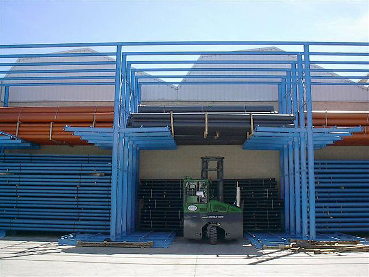 The growing need and growing market in Spain, the existing warehouse on the property of the customer was not sufficient anymore. Due to the "chaotic" storage, which was mainly of PVC and metal pipes, the base of the open ground was quickly spoilt. The tube bundles were scattered all over the storage facility and one had to go inside several times and search for the required grades. This loss of time during maneuvering of the product soon became apparent. During a year the lost time grew to several thousand hours and have even led to the fact that orders have been canceled because the customer was not able to overcome the logistical challenge anymore.