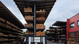 The Dutch timber trading company van Deuveren opted for racking systems from OHRA for the construction of its new company headquarters. In addition to the technical features, the main deciding factor was the possibility of customising the colour of the racks. The façade design of the various buildings and the interior and exterior racks form a harmonious unit thanks to repeating colours, reflecting the modernity and quality of the services provided by "Houthandel van Deuveren".