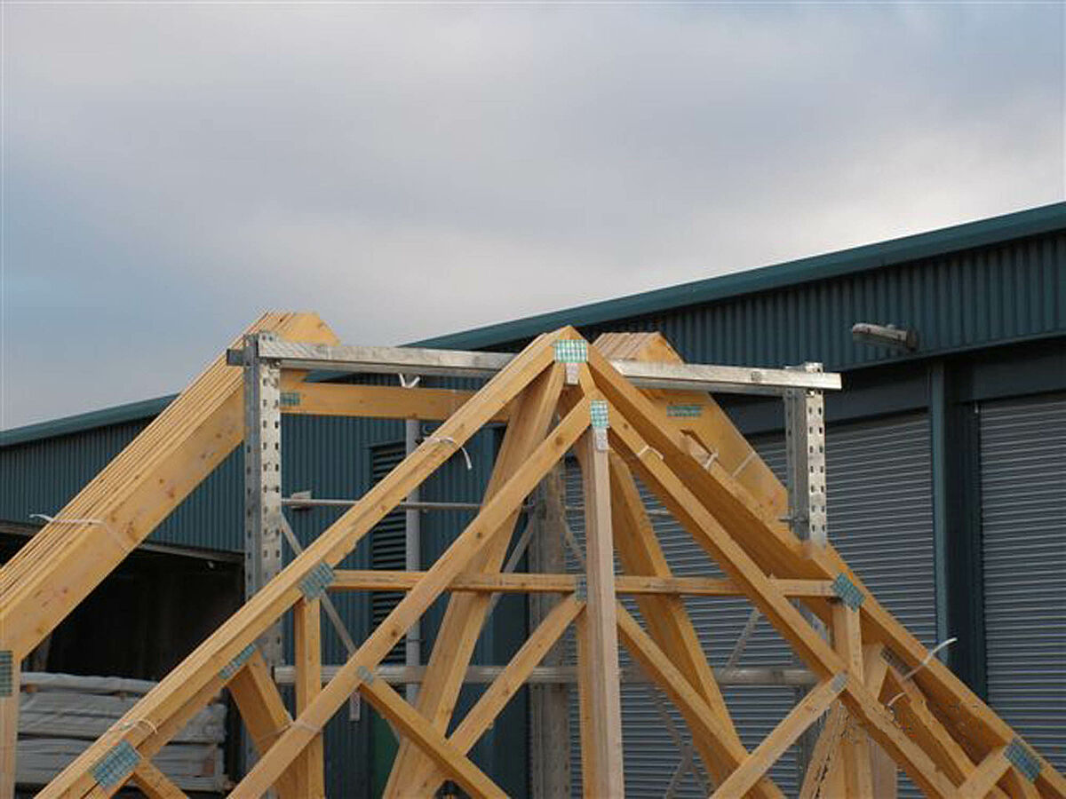 This method of supporting the newly made Trusses is a great improvement on the previous system because of the adjustability, and the point of contact is on the bottom Timber Beam of the Truss, which is where the truss is designed to be supported.