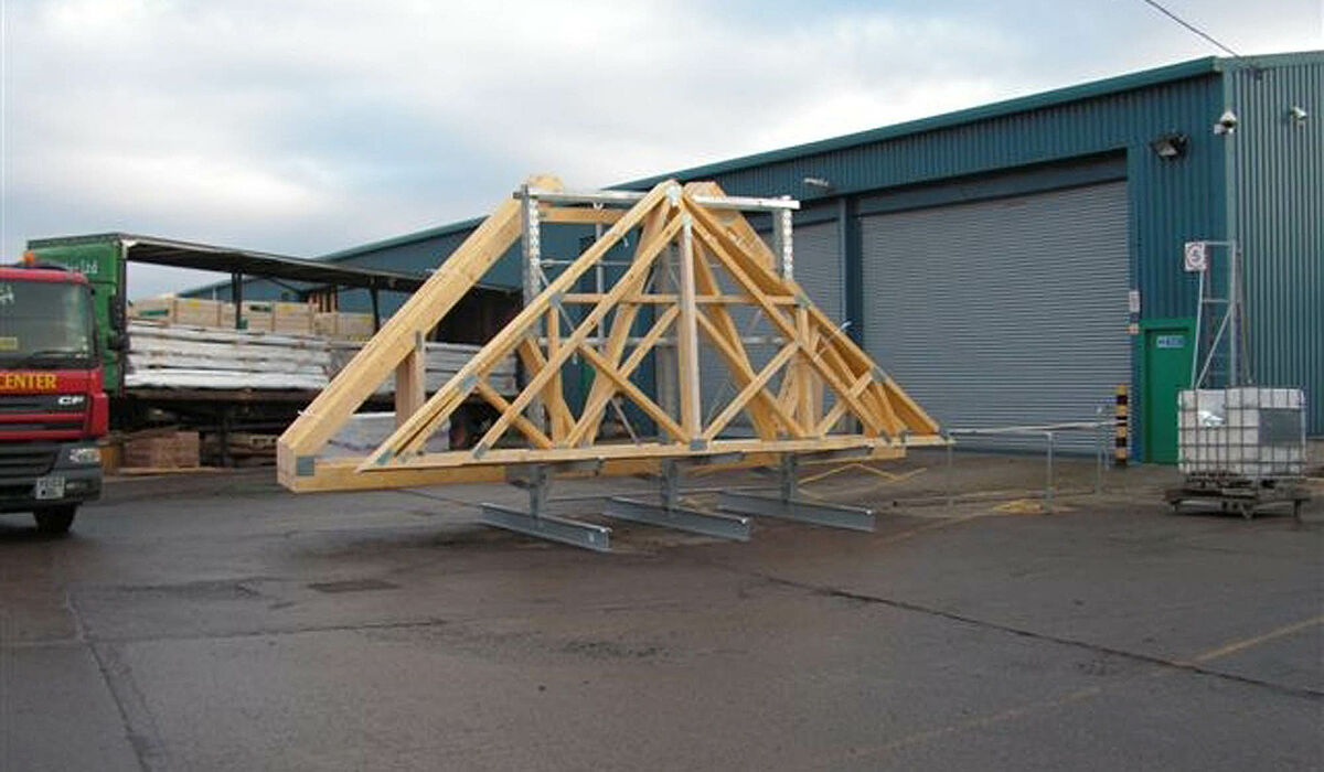 Previously Walker Timber had constructed themselves a “racking system” from Timber Units which had broken due to damage from contact with the Fork Truck etc. These had little Load Rating, and no adjustment. Newly made Trusses of all sizes and weights had been stored on these fragile Frames, and sometimes the Trusses were in contact with the ground on the section of the Truss overhang, which didn’t support the truss correctly prior to shipment.