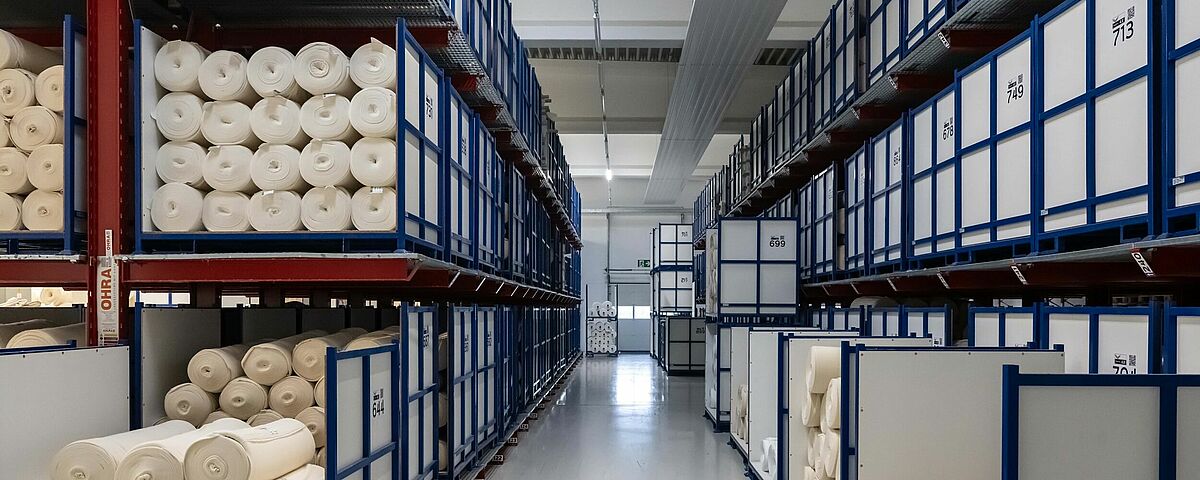 Previously, trigema stored the fabrics in a floor stacking system between the “production” and “finishing” stages. But with increasing utilisation of the warehouse, accessing the individual articles proved to be too time-consuming. In addition, moving the textiles around frequently caused damage to the fabric. The company wanted to store their goods according to the first-in-first-out principle (FIFO), but this could only be implemented at great expense. As higher storage capacities became necessary, trigema took the opportunity to thoroughly optimise the logistics processes in the buffer warehouse.